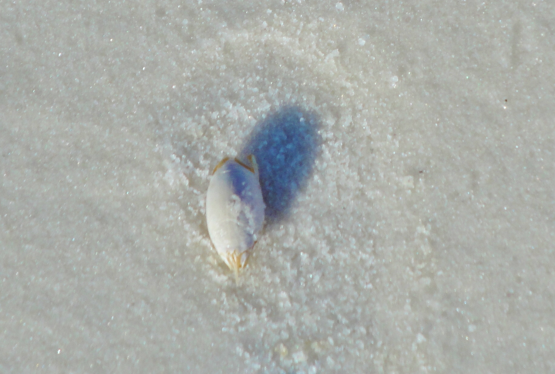 Critters burrowing in the sand (mole crabs), seashells, countless silvery fish, darting needlefish, and shell-less snails (sea hares) waving their wings like butterflies were some of the treasures: