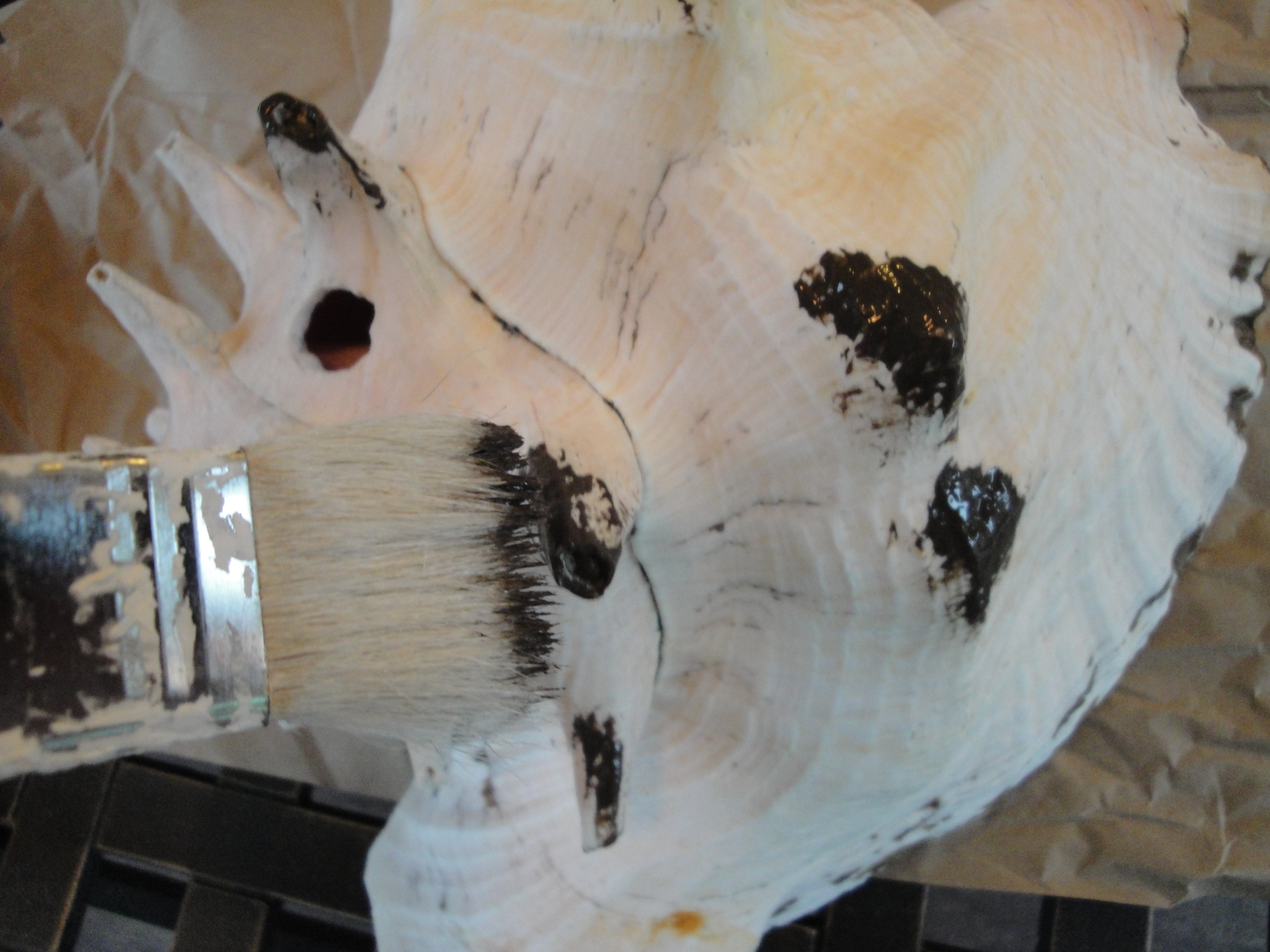 2. Once the knobby parts are all painted, run your brush lightly over the rest of the conch shell so that paint lands on any raised ridges.