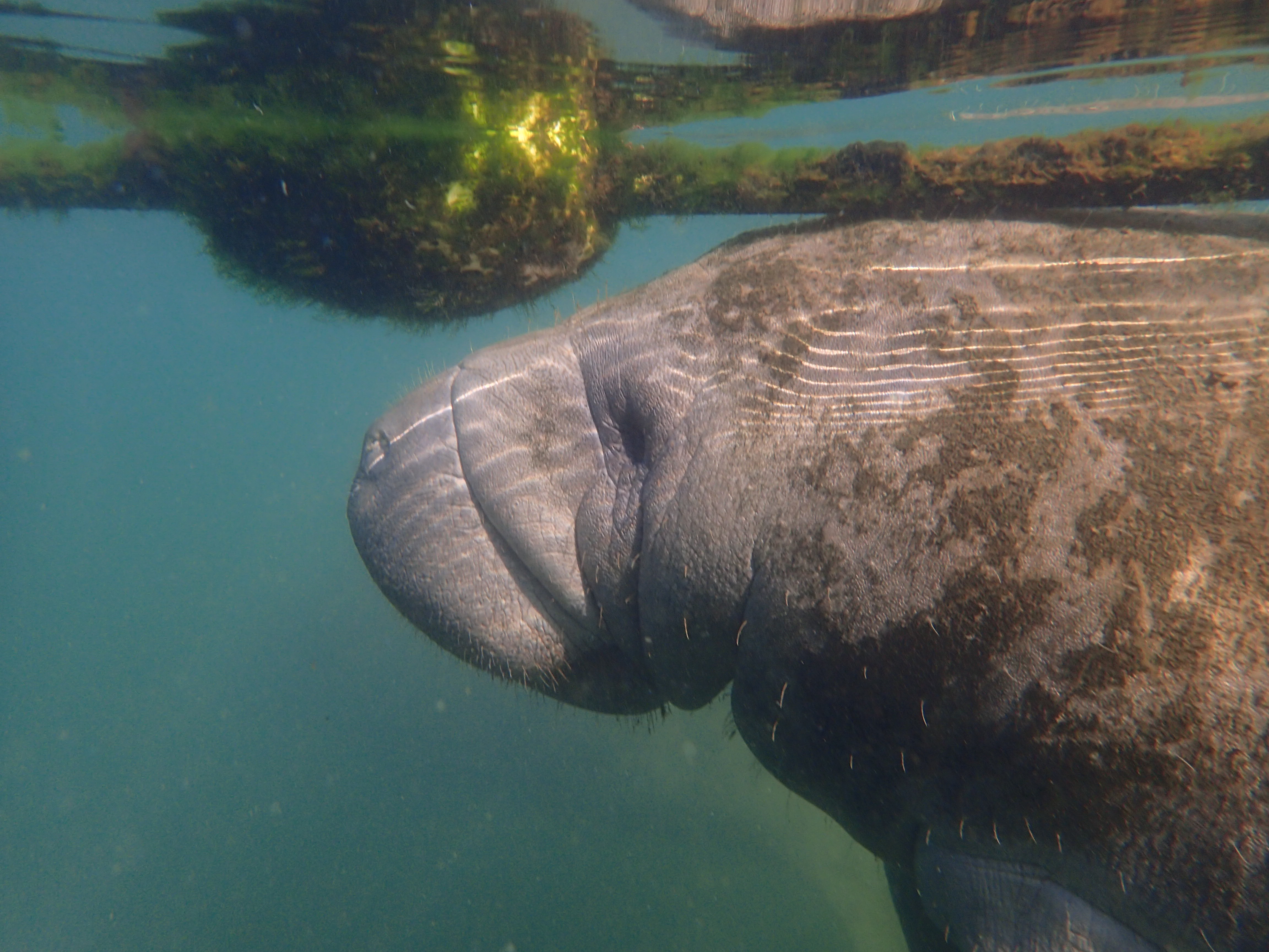 Being next to the manatees was the ultimate stress reliever. They’d relax on the bottom, take turns drifting up to the surface to breathe, munch on vegetation, and investigate us two-legged creatures when they got curious.