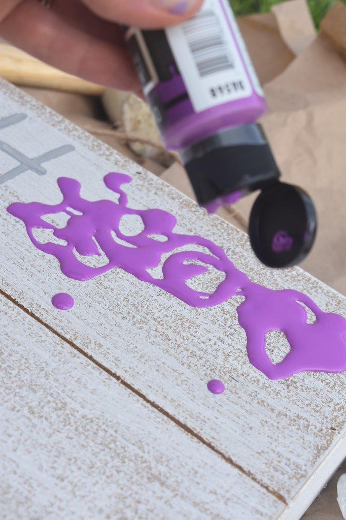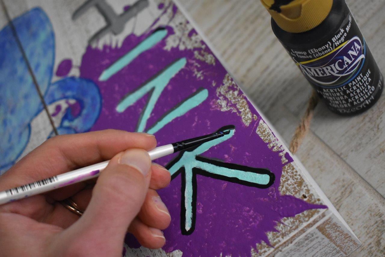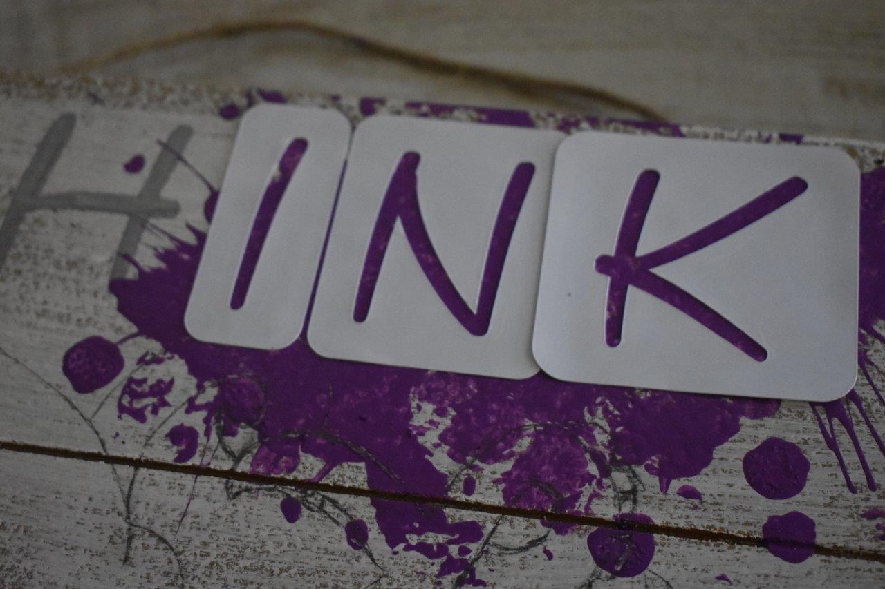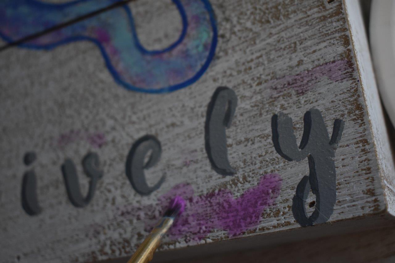 5. Place the “INK” and “positively” letters on the wood sign, and paint them in however you’d like (paint brush, fingers, foam pouncer):