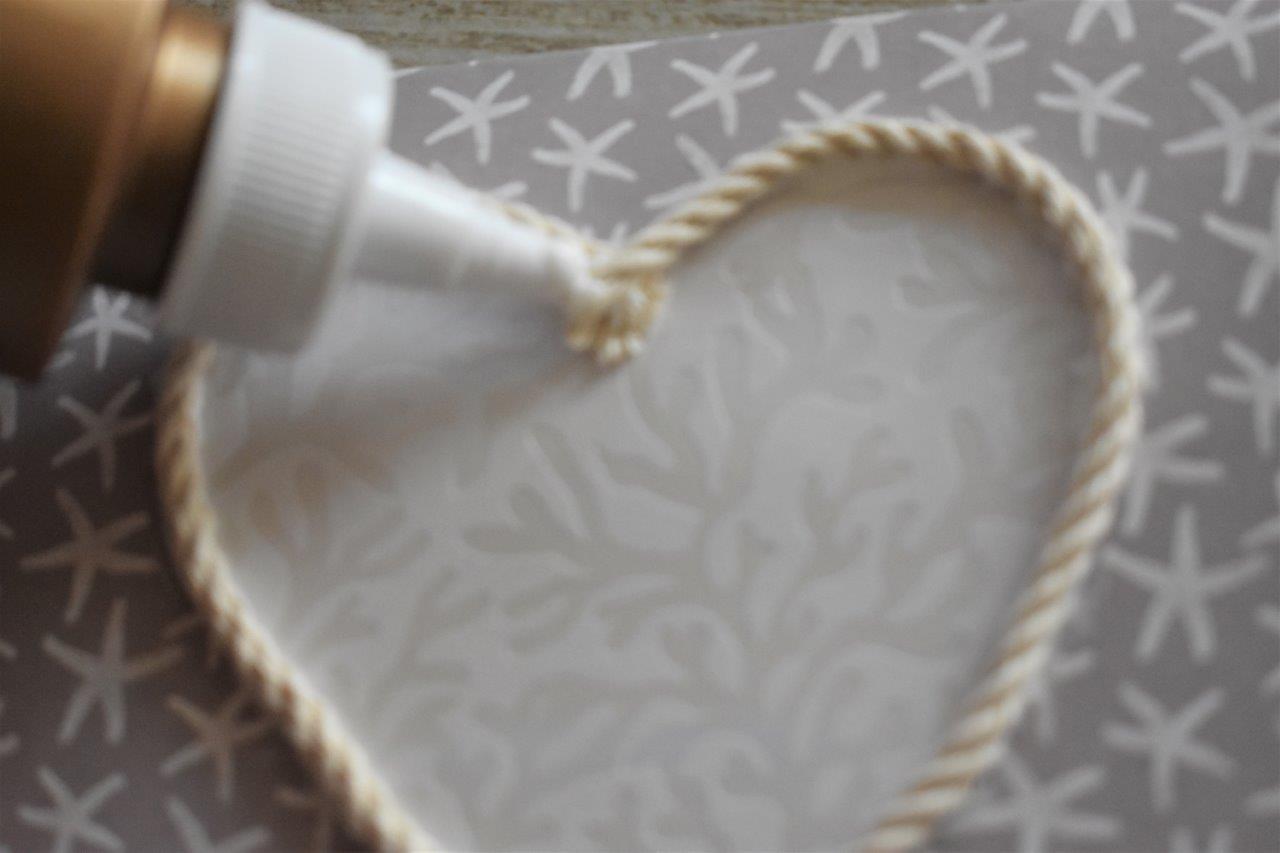6. Get creative with your designs – you can customize these however you want with all sorts of colors, textures, and shapes! We glued thin craft rope around the heart (be sure to dab glue on the ends so it doesn’t unravel):